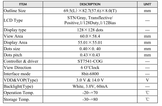 128×128 monochrome LCD module with COG type