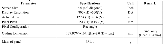 Bottom price Shenzhen Pcb Assembly - 6 inch E-paper lcd display /4:3 800×600 LCD screen TM060SDHE1 – New Display