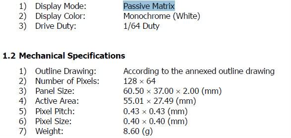Monochrome OLED display 2.4inch 128*64 resolution